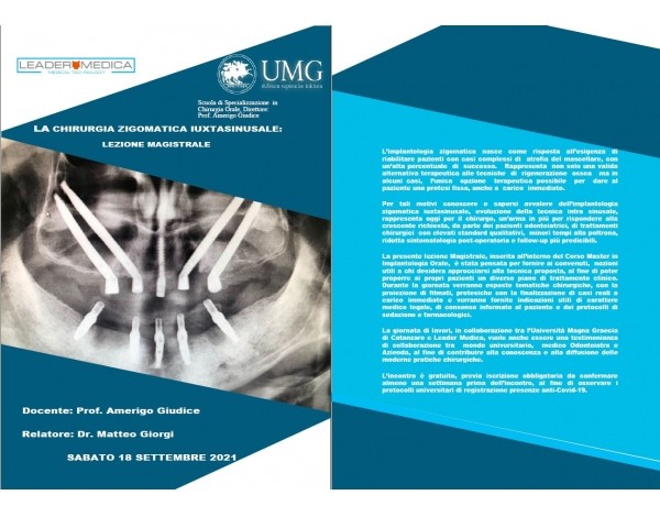 La jornada de trabajo, en colaboración entre la Universidad Magna Graecia de Catanzaro y Leader Medical, pretende ser también un testimonio de colaboración entre el mundo universitario, el odontólogo y la empresa, con el fin de contribuir al conocimiento y difusión de las prácticas quirúrgicas modernas.